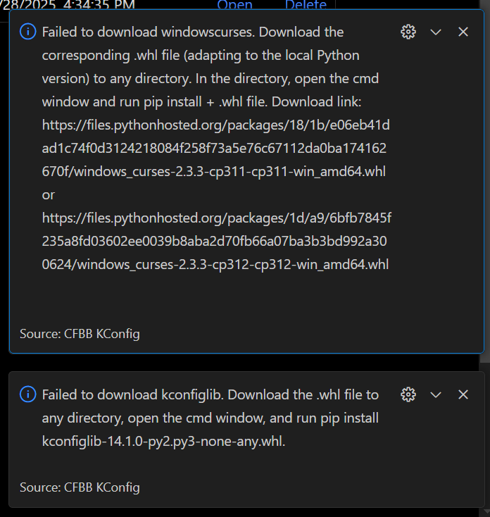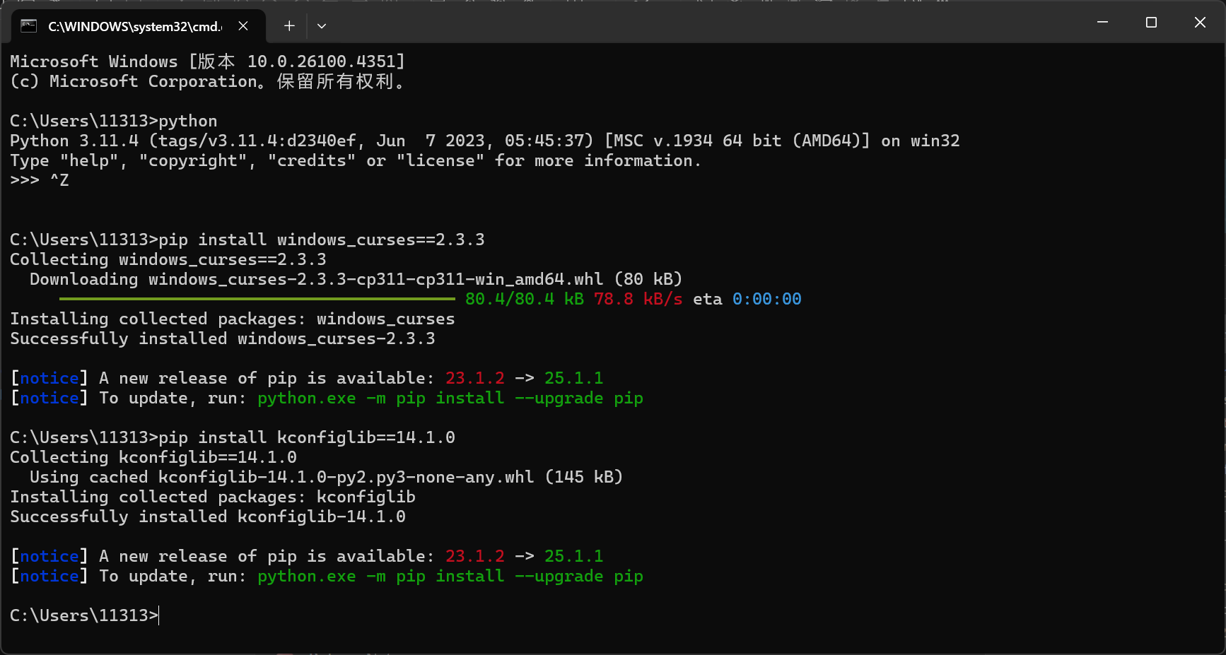 如果你是第一次使用这个IDE,那么打开Kconfig配置时会提示安装Python环境,目前IDE使用的是3.11.4版本。如果IDE检测到系统环境中没有的话会自动下载,当然也可以提前下载。
