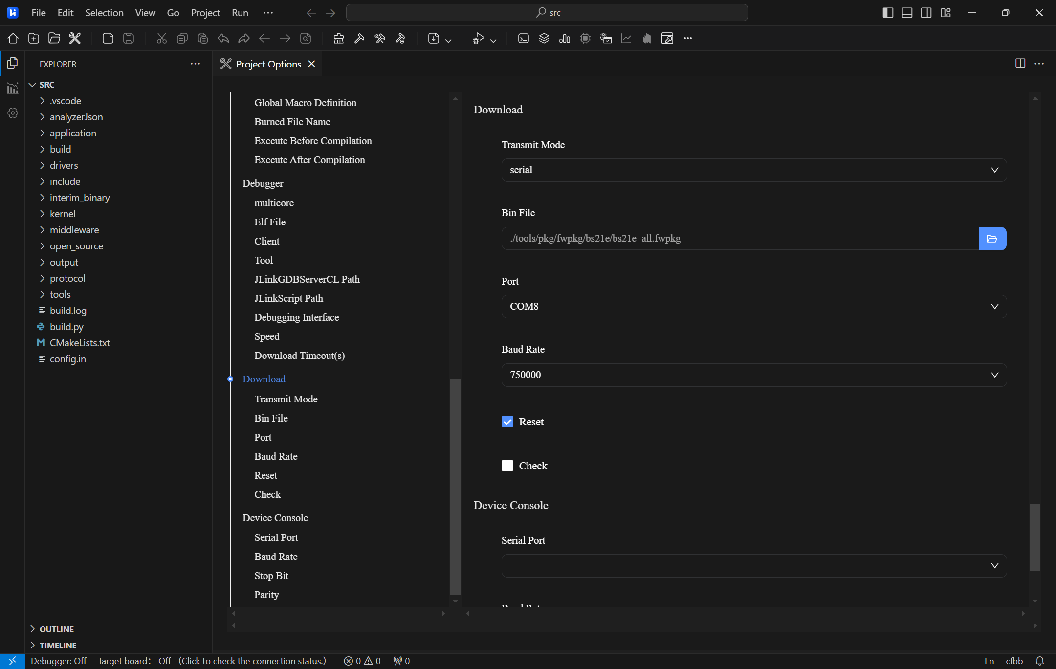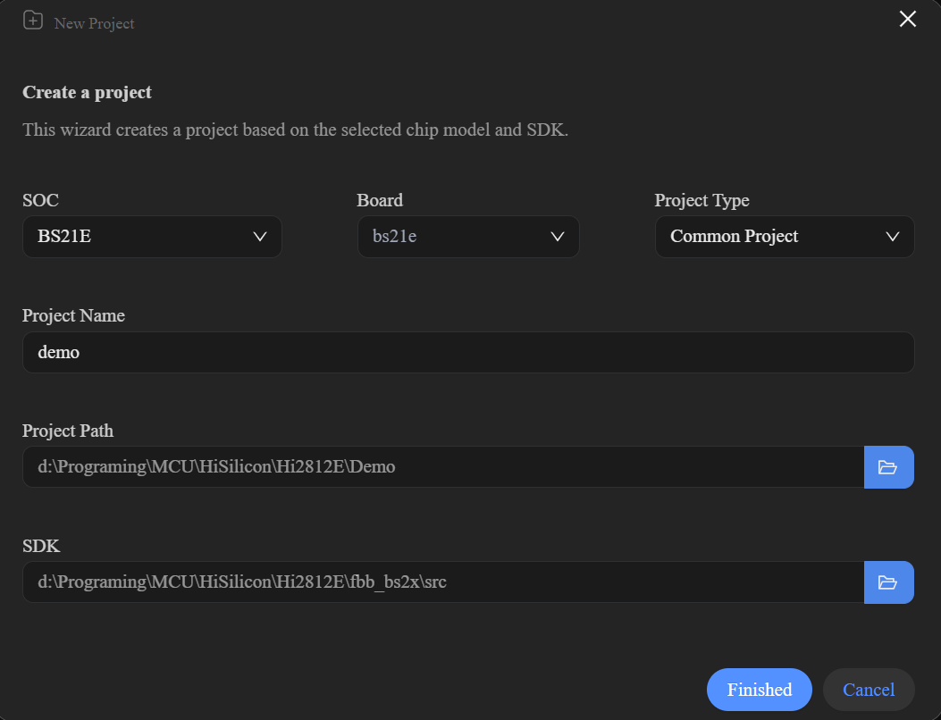 根据自己的开发板芯片选择对应的选项,BS21对应Hi2821芯片,BS63对应Hi3863芯片,带E后缀的芯片同理。