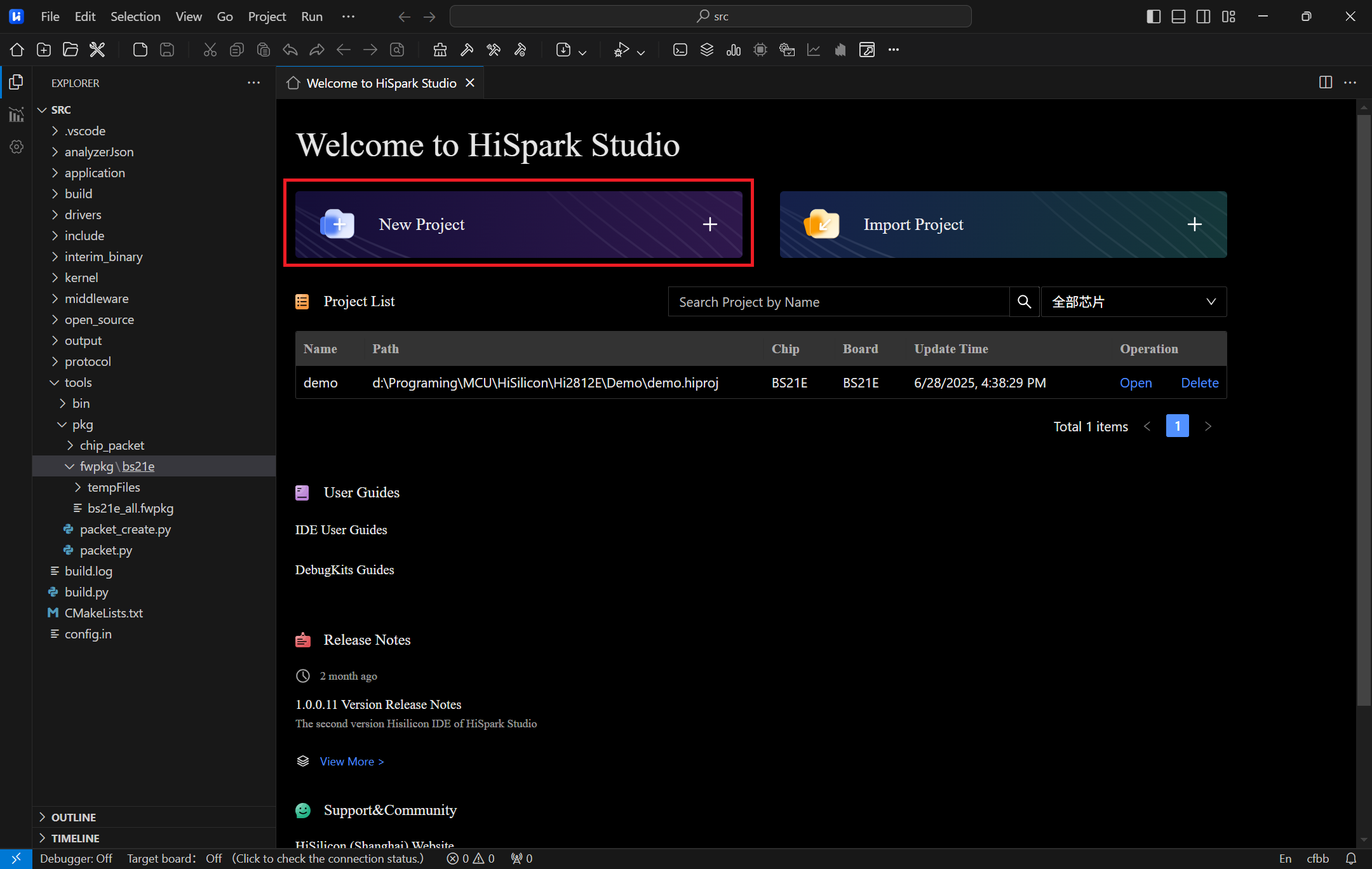 星闪的开发IDE是使用HiSpark Studio,这款IDE其实就是VSCode魔改过来的,使用方法几乎一模一样,除了工具栏不一样以外,下载地址:HiSpark Studio