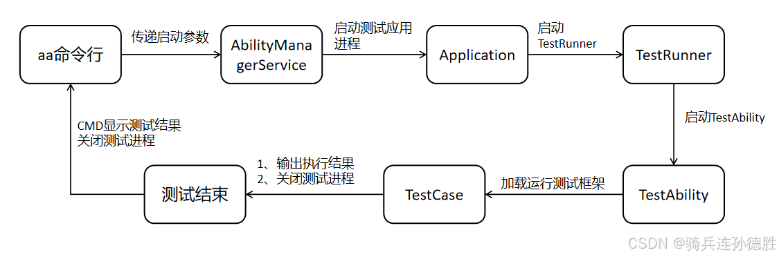 主要流程就是将编写好的测试用例通过aa命令行运行到手机自动化测试框架执行,最后将执行结果返回到控制台。