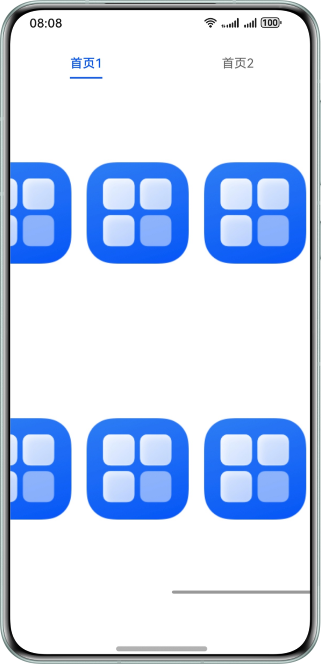 Tabs组件嵌套Grid组件,当Grid组件滑动到右侧底部时,无法触发Tabs组件的滑动。如下图所示,使用手指左滑页面中的2行icon,预期触发tab从“首页1”切换到“首页2”,实际未触发。