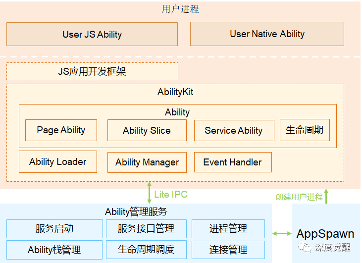 AppSpawn是负责创建Ability应用所在进程的系统服务,该服务有较高的权限,为Ability应用设置相应的权限,并预加载一些通用的模块,加速应用的启动。