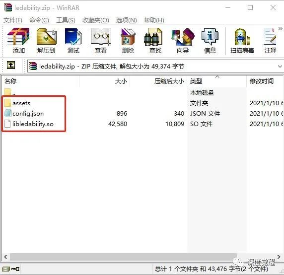 将applications\sample\camera\myLedApp\config.json和 Z:\openharmony\out\my_hi3516dv300\dev_tools\led\libledability.so打包压缩成zip包