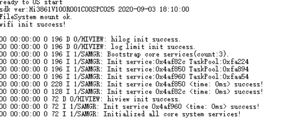 - 复位WLAN模组,终端界面显示“ready to OS start”,证明WiFi模组复位成功。
