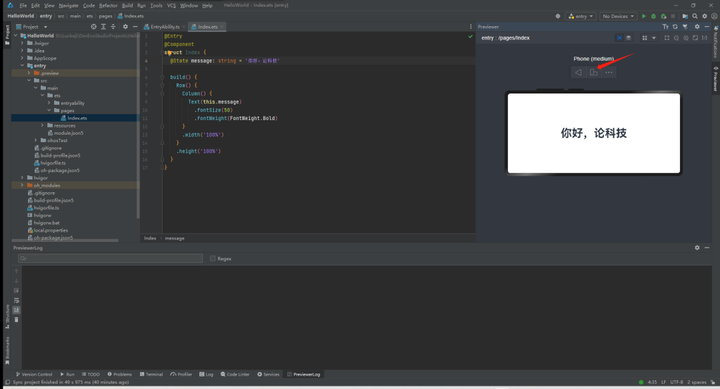 到此,你就完成了一个鸿蒙HelloWorld应用开发了。