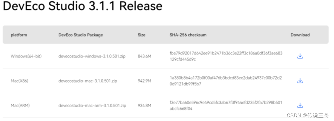 根据你电脑的系统选择下载,下面以Windows电脑为例,选择下载第一个devecostudio-windows-3.1.0.501.zip文件。下载后解压运行安装。