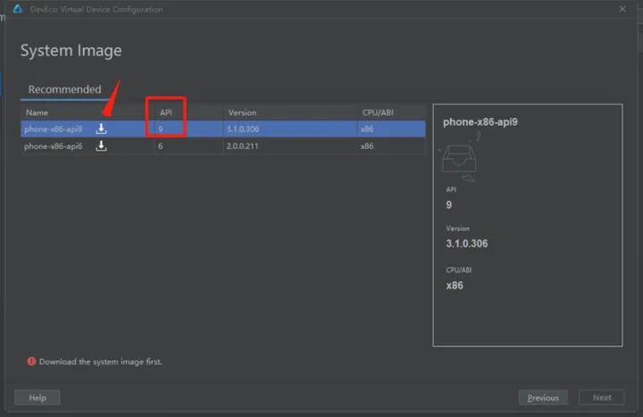 选择API版本为9的设备下载