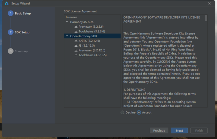 来到SDK协议页面,选择Accept接受,Next下一步