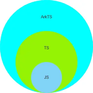 所以开发鸿蒙APP主要使用ArkTs编程语言。而这个ArkTs是基于TS(TypeScript)的扩展,而TS又是基于JS(JavaScript)的扩展。它们之间的关系如下图所示: