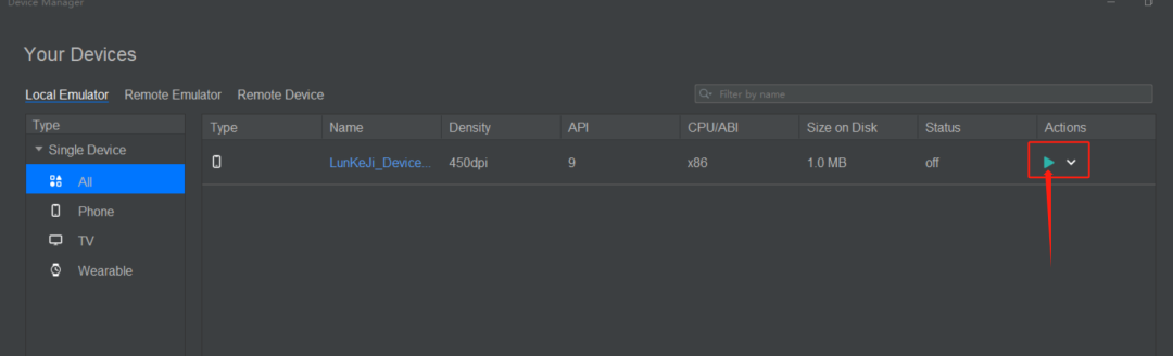 再点击 + New Emulator创建一个新的模拟器