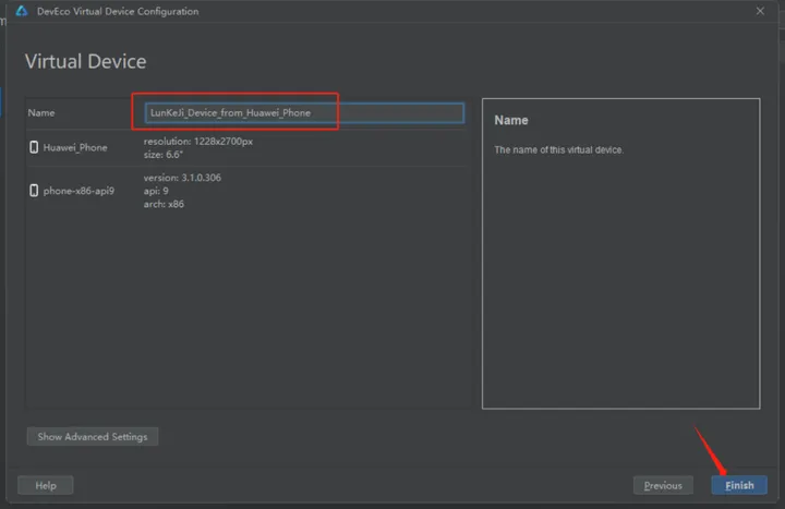 给设备起个名字点击Finish完成。