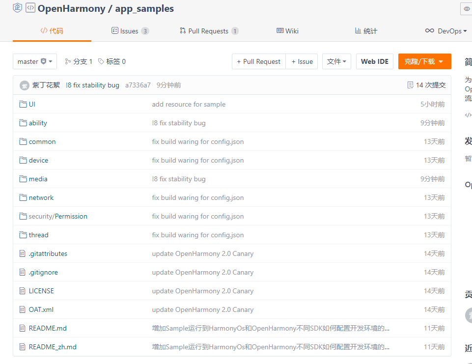我是直接用这个地址下载下来了,把全部的下载,方便学习。https://gitee.com/openharmony/app_samples/tree/master
