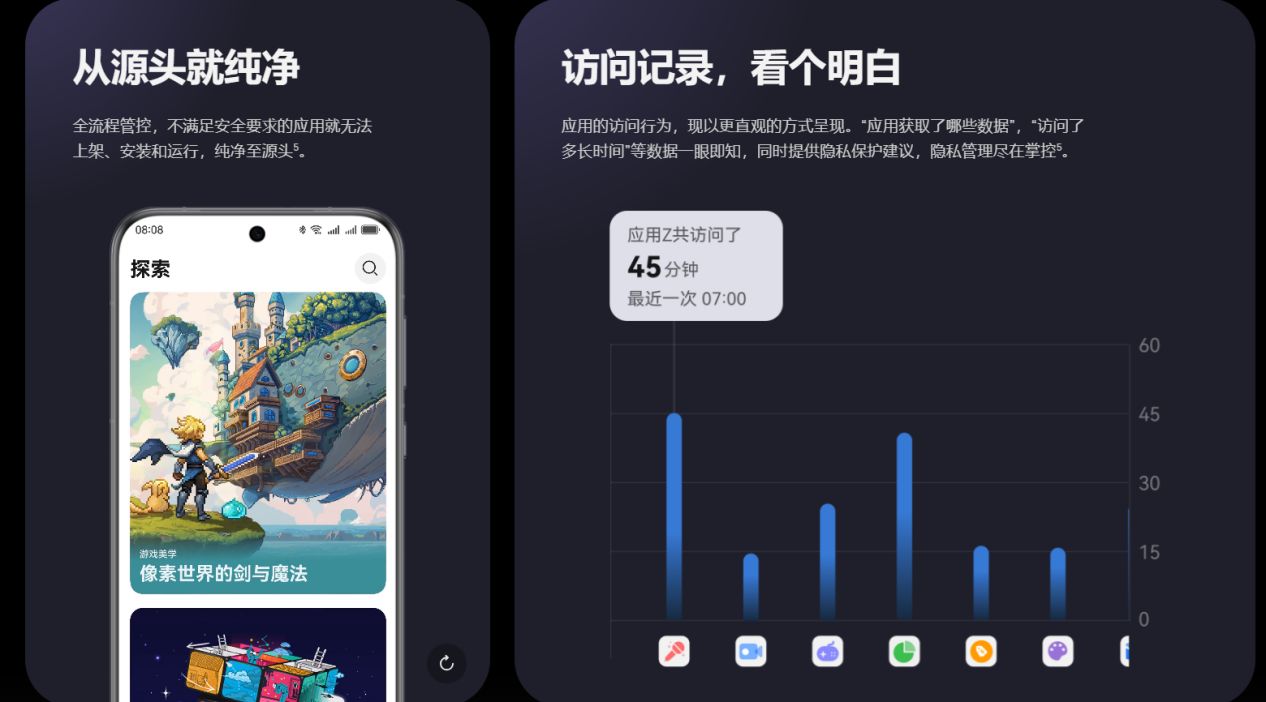 在隐私保护方面,鸿蒙HarmonyOS NEXT也融入了AI的智慧。新增的隐私和安全中心文件保密柜功能,能够便捷地加密保存图片、音视频和文档,有效防止信息泄露。