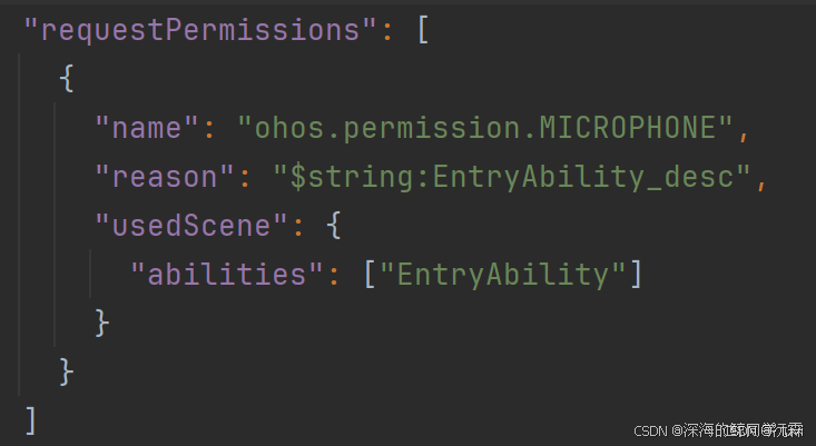 需要录音,必不可少的是麦克风权限,需要在 module.json5 中添加 ohos.permission.MICROPHONE 权限。