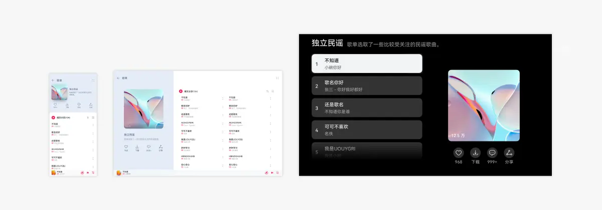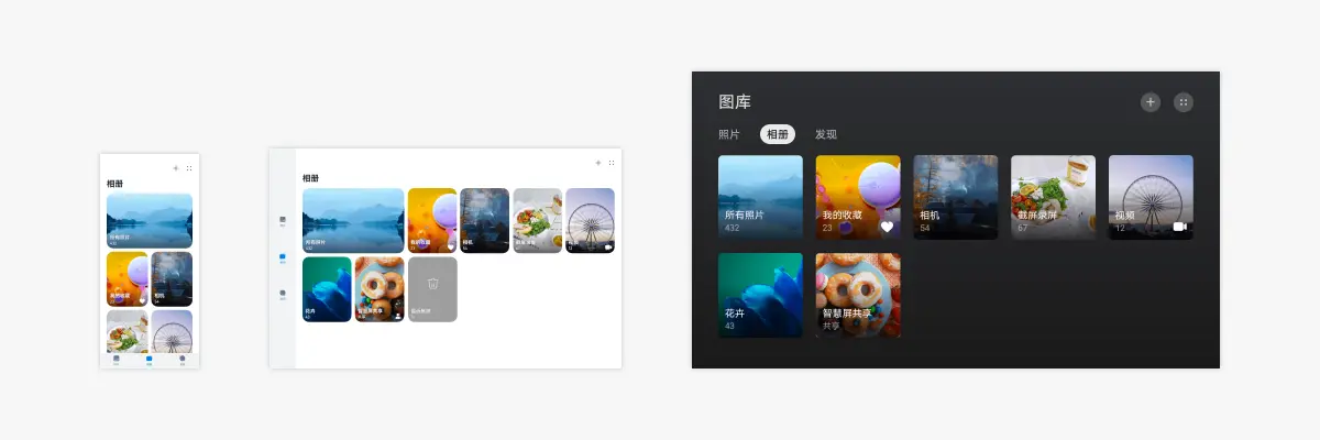 在硬件能力、交互方式、使用场景类似的设备上,应主要考虑布局位置、内容宽度、横向组件数量的调整,避免出现因横竖屏切换、窗口尺寸变化造成的界面元素不合理空白、模糊、变形、截断的问题。