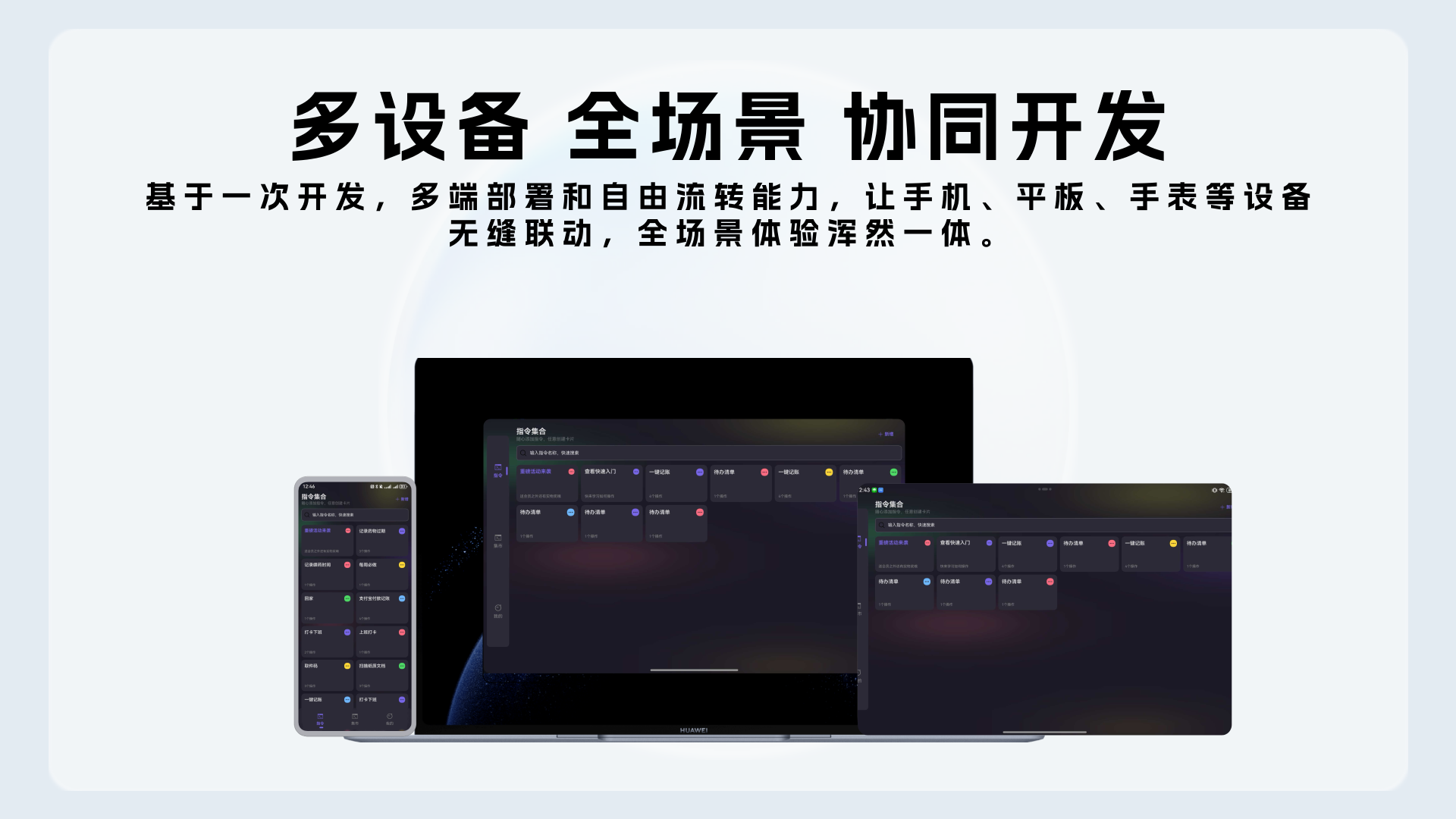 得益于鸿蒙生态的“一套代码,多端部署”特性,指令魔方在上线之初就支持手机端、Pad端、电脑端的无缝适配。这不仅让用户在不同设备上都能使用同一个应用,也让跨设备操作变得更加高效。比如,用户可以在手机上创建一个指令,然后在电脑上执行,或者在Pad上进行调整。