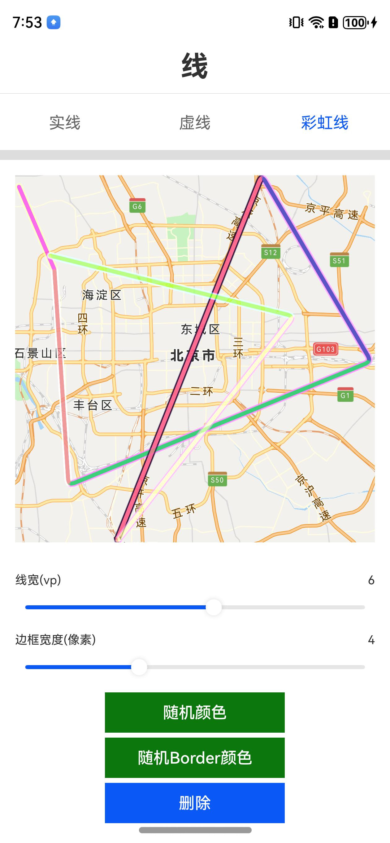 和实线使用方式基本一致,segments参数分段设置多种颜色即可,以下是完整示例,4个点,3个段: