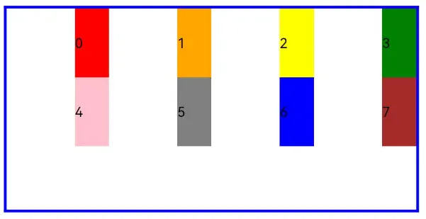 - 当columns为自定义值,栅格布局在任何尺寸设备下都被分为columns列。下面分别设置栅格布局列数为4和8,子元素默认占一列,效果如下: