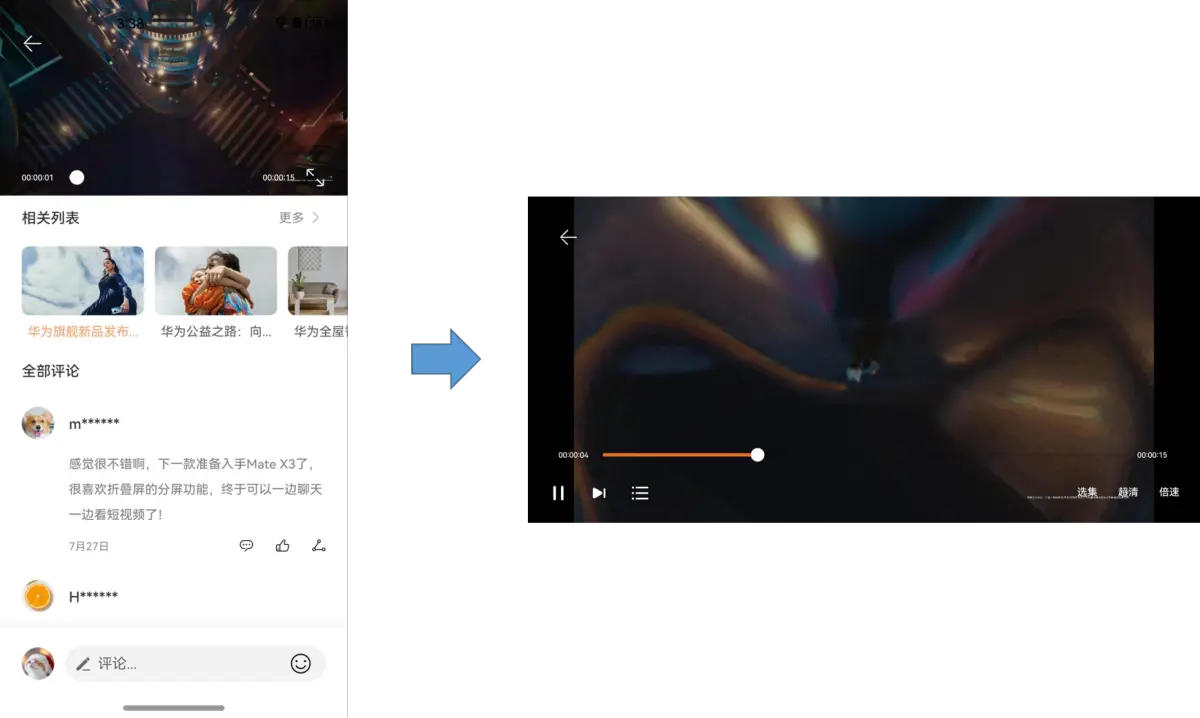 实现视频播窗页面的横竖屏转换,用户可以切换到全屏播放场景。