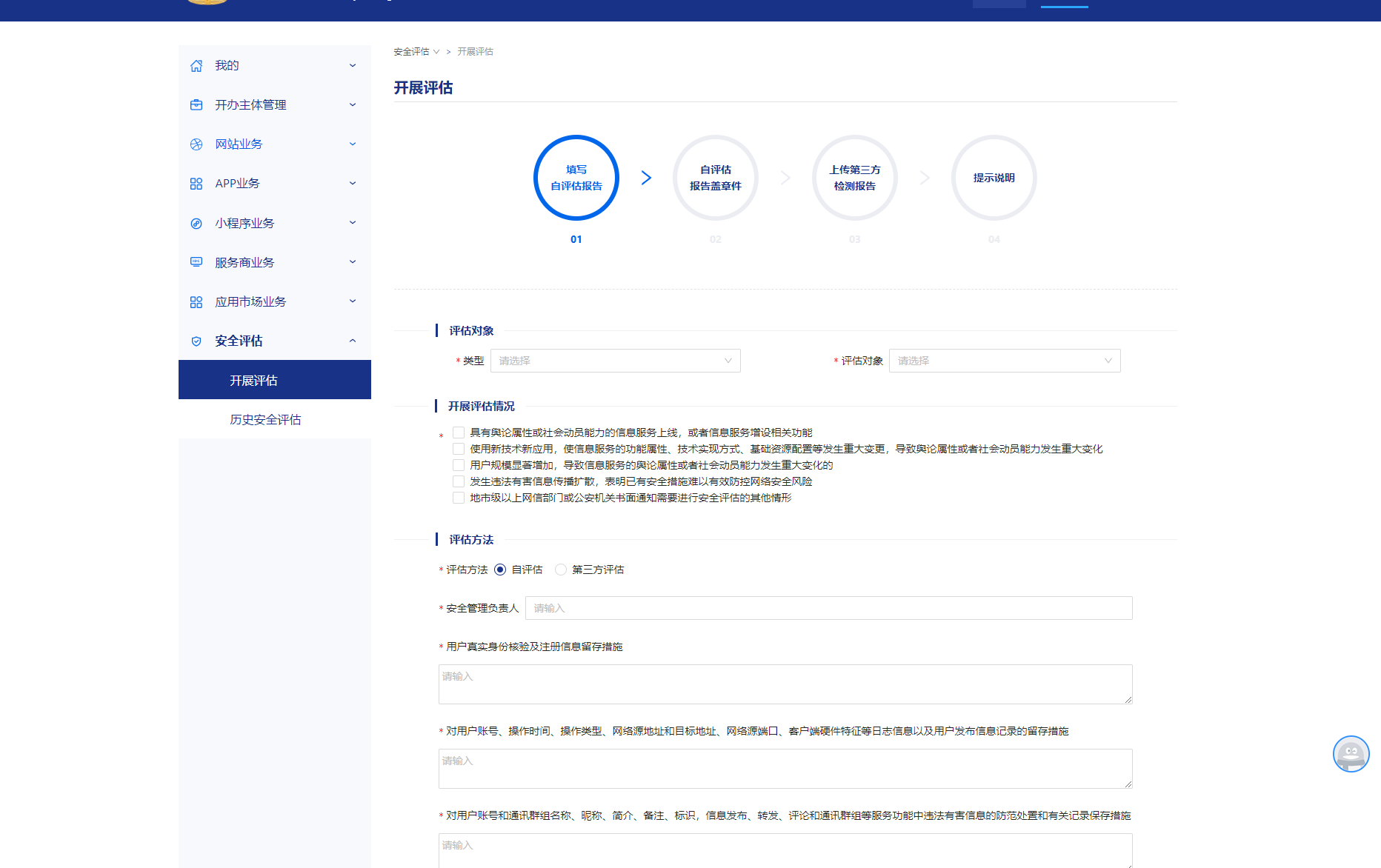 如实填写,完成后下载评估报告,自己评估报告完成以后点击会提交到第三方评估审核,完全审核成功以后会得到等待通知。