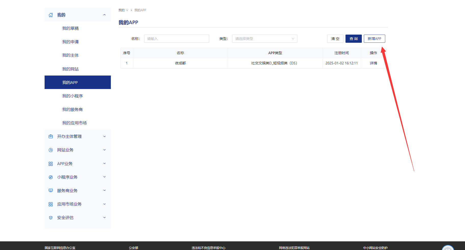 这是已经审核通过的,我们现在要为客户填写,增加一个APP,这里优雅草卓伊凡只是做演示,真正填写的时候需要客户自己的信息,自己的企业来填写,这是对企业负责也是对自己负责,这里的信息是直接关联安全责任的。