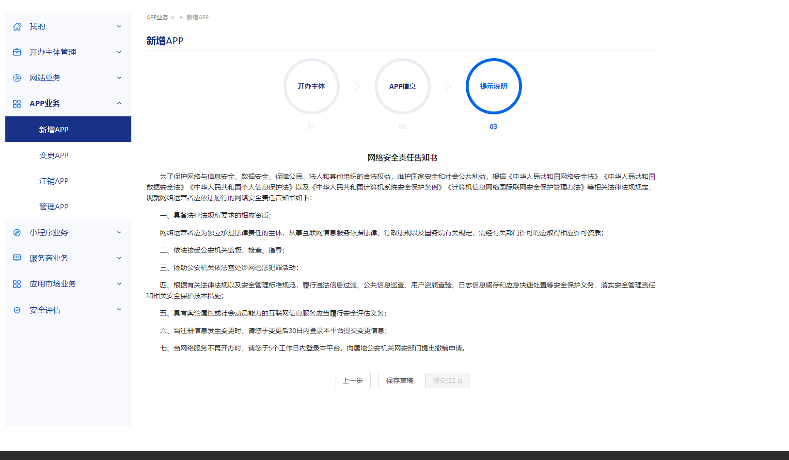 七、当网络服务不再开办时,请您于5个工作日内登录本平台,向属地公安机关网安部门提出撤销申请。