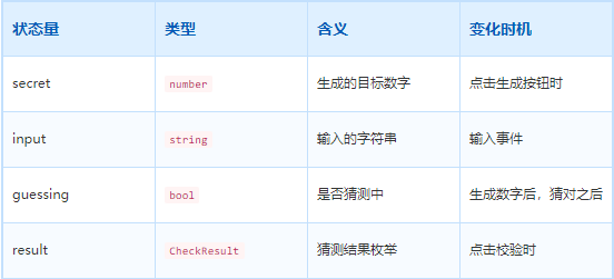 猜数字需求中,可以分析出以下需要变化的状态: