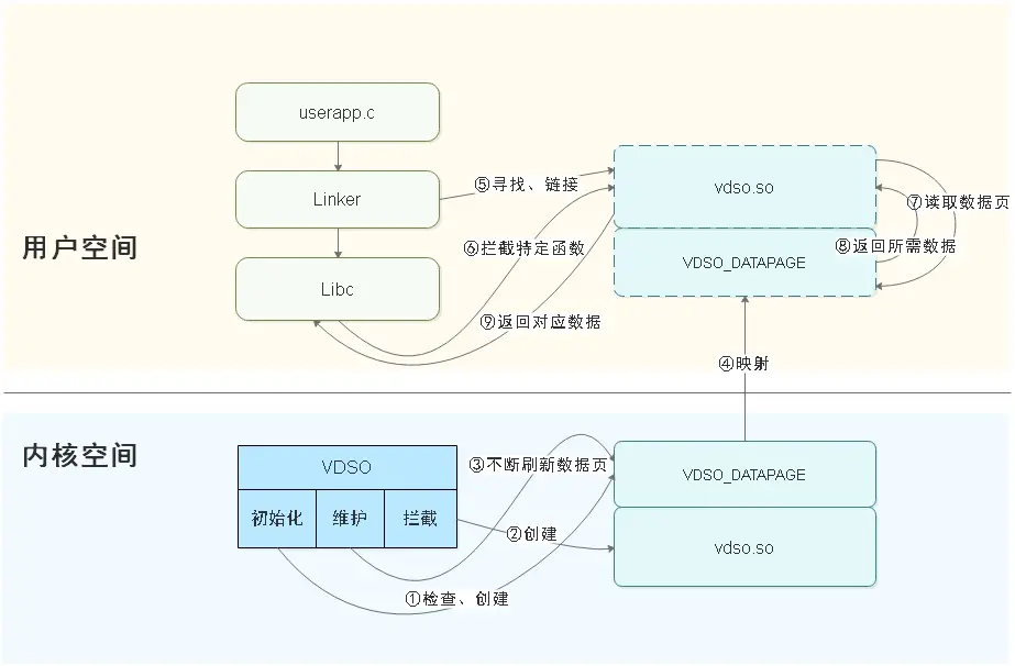 如图1所示,当前VDSO机制有以下几个主要步骤: