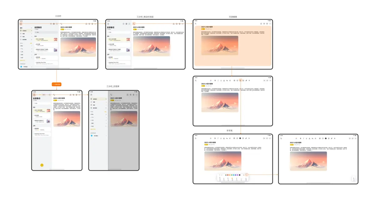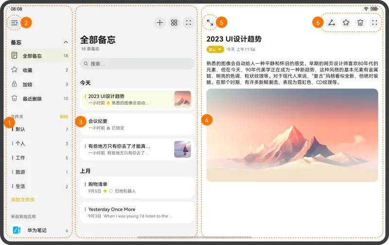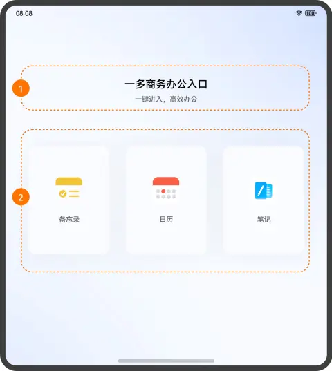 本文从目前流行的垂类市场中,选择商务办公类应用作为典型案例,详细介绍 “一多” 在实际开发中的应用。主要包含入口、备忘录、笔记汇总、笔记、日历等典型页面。