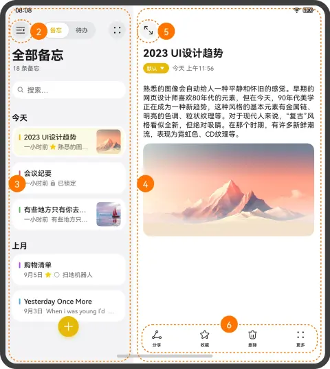 | 3 | 笔记内容 | Tabs标签 下的 TabContent。 |