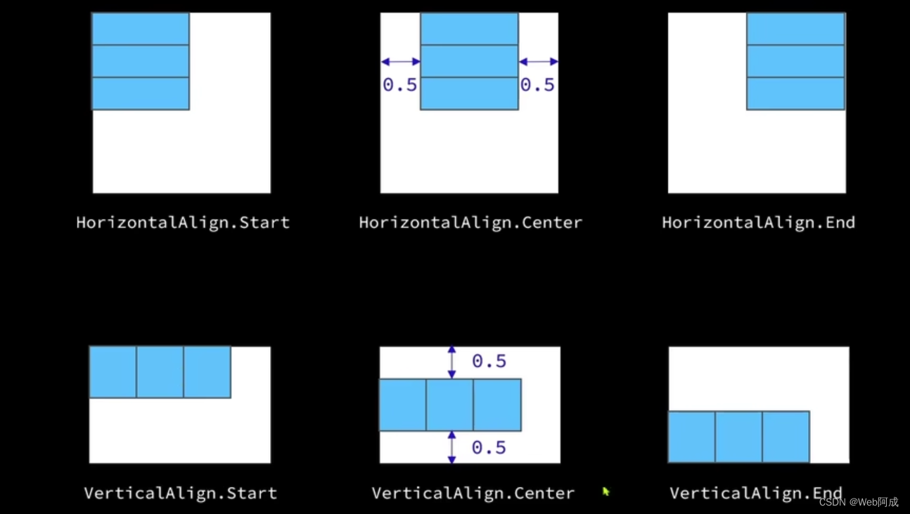 参数:Column容器使用HorizontailAlign枚举,Row容器使用verticalAlign枚举。