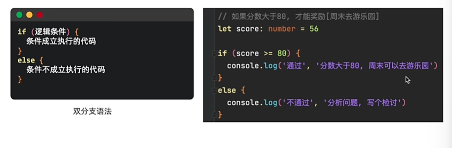 双分支 ( 满足条件, 就会执行A代码, 不满足会执行B代码 )