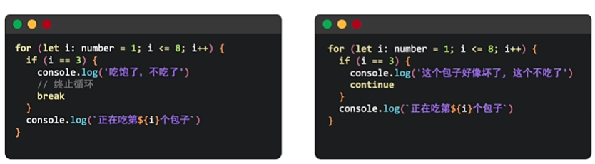 - break: 终止整个循环( 后面的循环不执行了 )