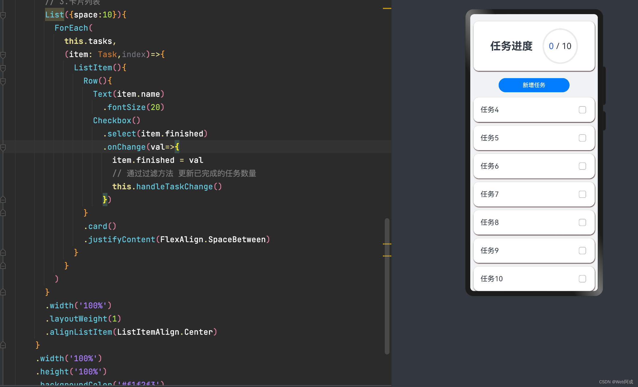 我们继续学习使用ArkTS实现一个任务进度的统计功能。