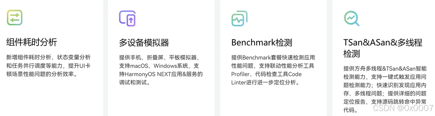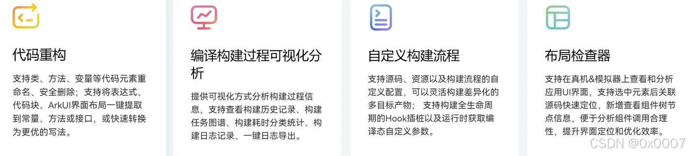 各个功能特性细节,详见官网 DevEco Studio-鸿蒙应用集成开发环境(IDE)-华为开发者联盟