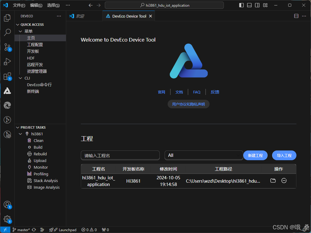 打开VSCode,打开DevEco Device Tool主页,点击“导入工程”