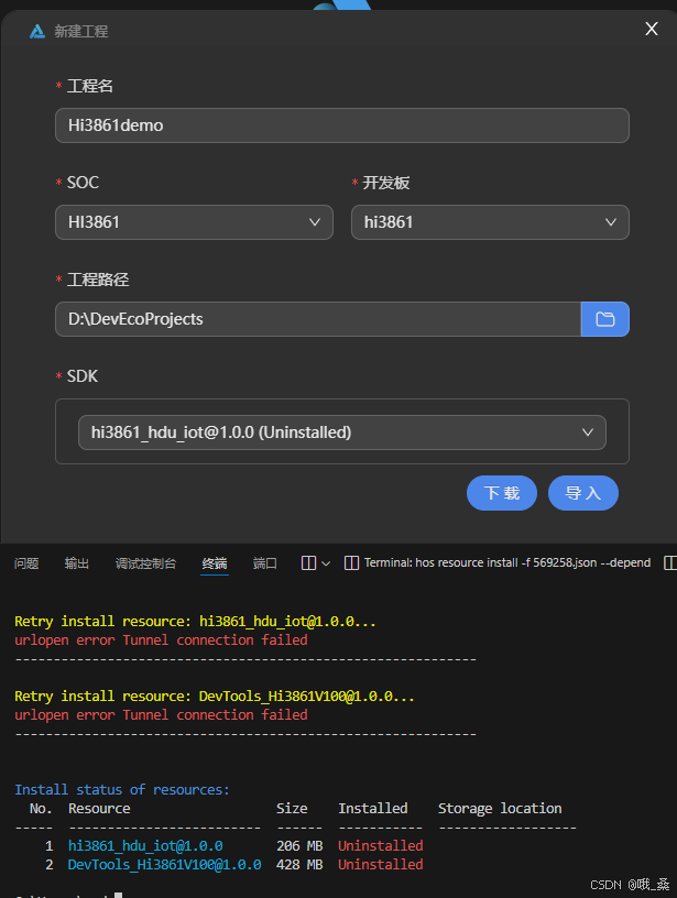径:“D:\3861_workspace”(用户自定义)。SDK栏如果显示“hi3861_hdu_iot@1.0.0