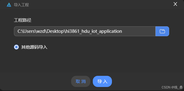 在导入工程弹窗中选择Hi3861 SDK目录,点击“导入”。