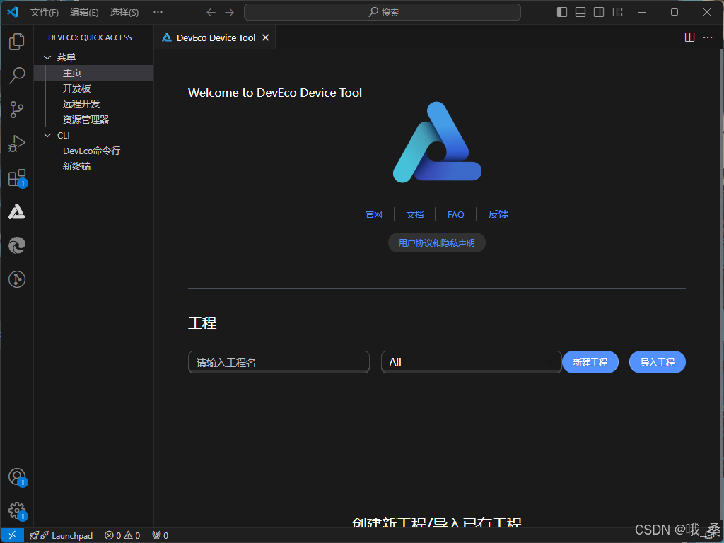 打开VSCode,打开DevEco Device Tool主页,点击“新建工程”
