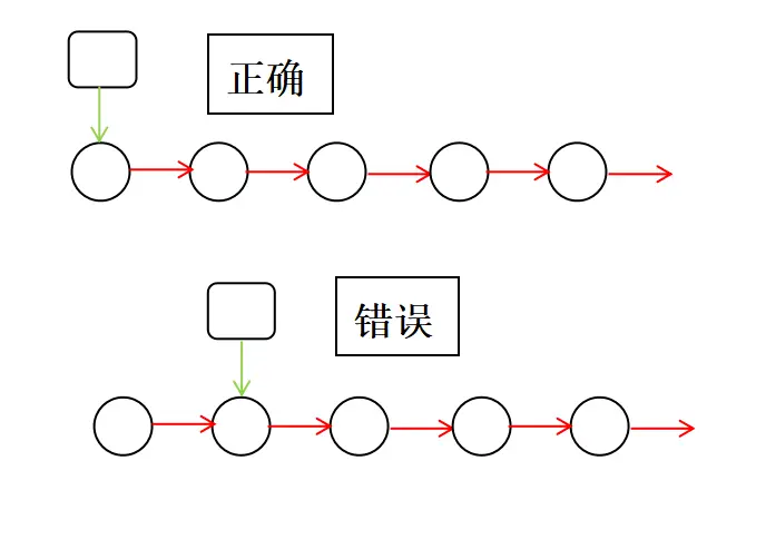 如上图所示,圆角矩形表示的是HdfSList,其root成员记录了链表中某节点的地址,为了访问整个链表,需要将root成员的值设置成第1个节点的地址。因为单链表只支持往一个方向查找,不支持往回查找,如上面的错误范例。如果root记录的是第二个节点地址,则第一个节点变得不可访问。