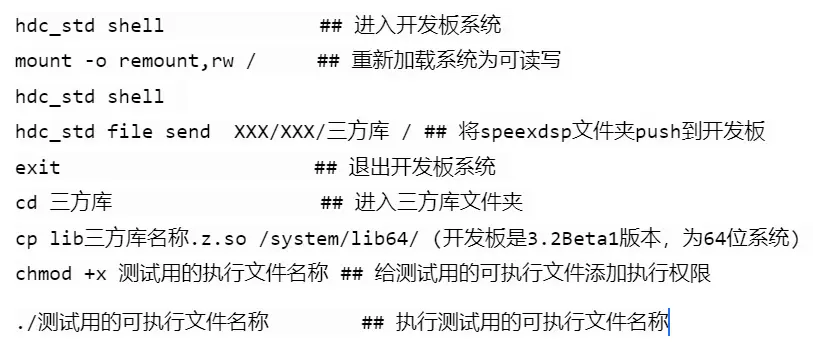 利用hdc_std工具将编译出的so动态链接库和测试用的可执行文件放到开发板上,验证移植的三方库功能是否正常。