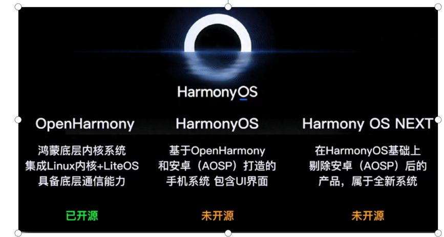 - 其它厂商也可以基于 OpenHarmony 推出自己的 鸿蒙操作系统 ;