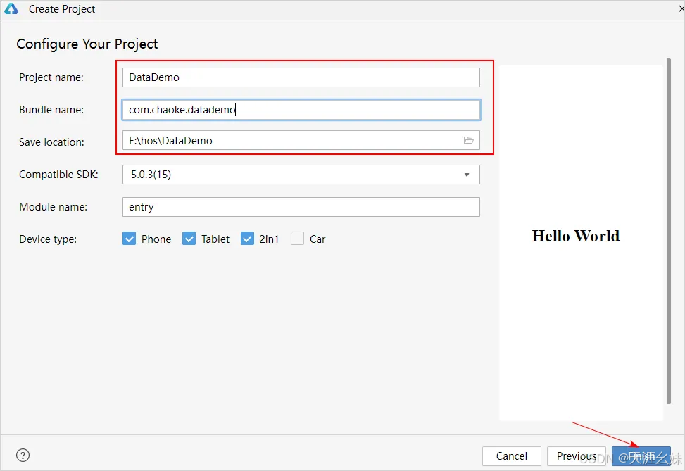 1、启动开发工具DevEco Studio创建项目DataDemo