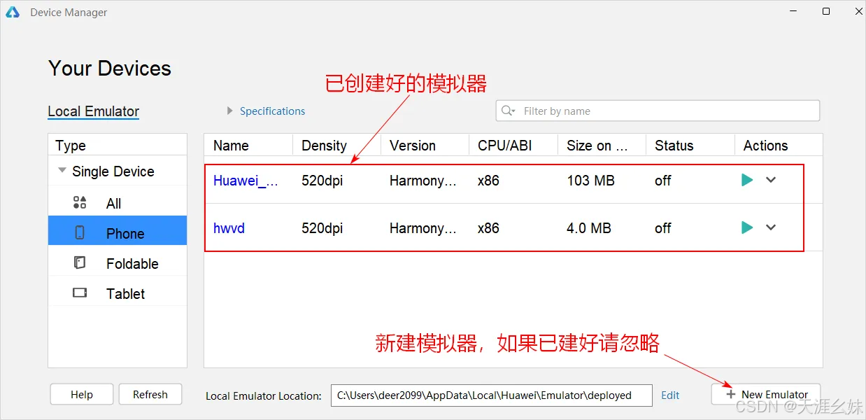 (2)启动已创建好的模拟器