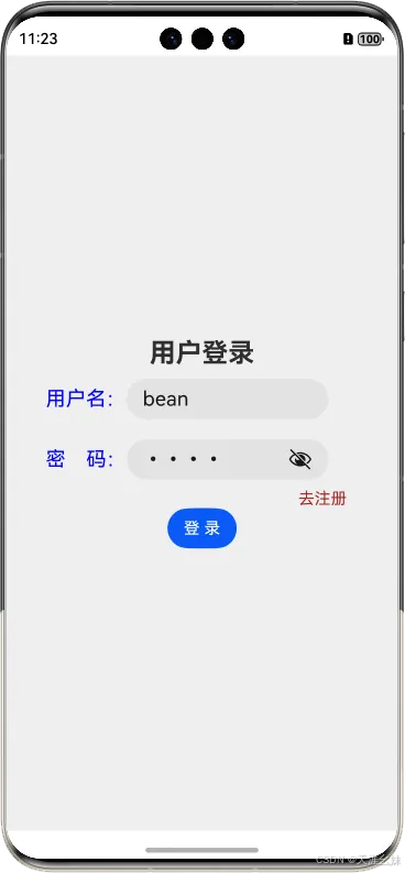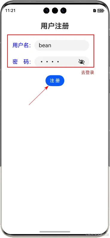 Text('去注册').margin({ right: 50 }).fontColor(Color.Brown)