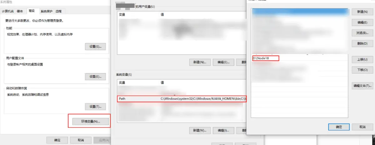 a.Node.js配置到环境变量中,以Windows系统为例:(建议使用18.14.1版本)。