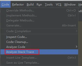i.单击菜单栏Code->Analyze Stack Trace,或在FaultLog页面异常堆栈信息处右键选择Analyze Stack Trace。