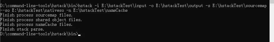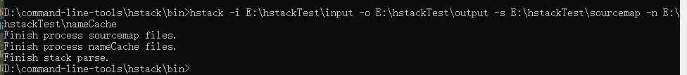 hstack -i E:\hstackTest\input -o E:\hstackTest\output -s E:\hstackTest\sourcemap --so E:\hstackTest\nativeso -n E:\hstackTest\nameCache