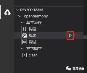 在DevEco Device Tool中,点击烧录后的箭头图标。插件会执行 upload命令进行烧录。