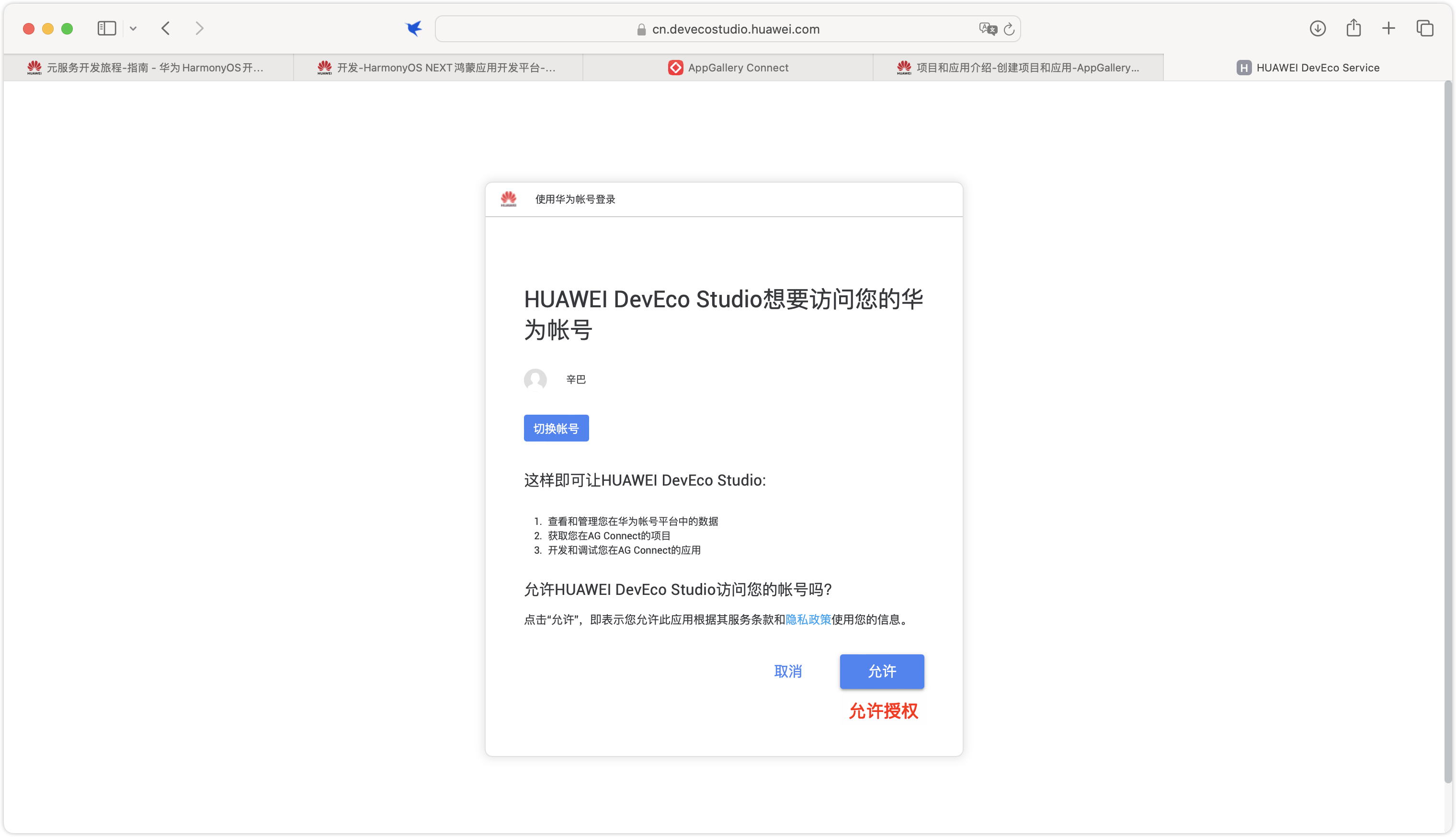 * To enable the atomic service to log in successfully using the HUAWEI ID, please refer
